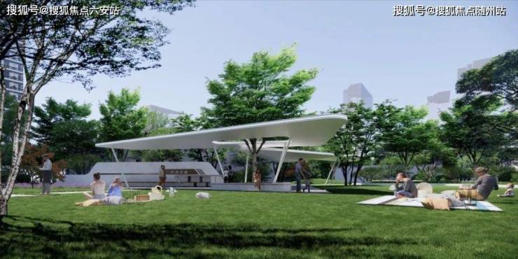 社区会客厅、邻里会客厅、架空层会所、乐活森林运动公园、四大主题花园、滨河景观长廊、环形跑道等串联社区内全龄休闲场域。