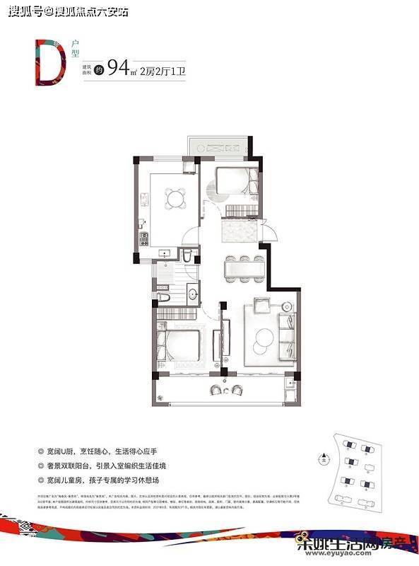 建面约94㎡的D户型,双开间朝南,亦可改造成3房2厅2卫的设计,完全可以满足二人世界到三口之家的过渡,家人的需求都被妥帖照顾。