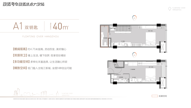 约4.75米朗阔层高,打造上下双层独立空间。一层静谧休憩,一层创想天地,宜自用、宜办公城芯难得恒产。