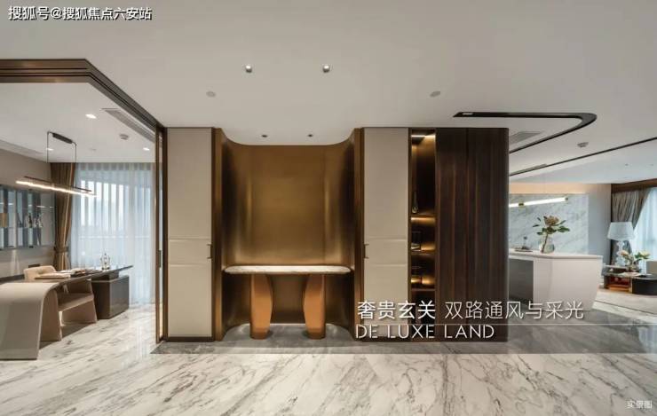 步出私享电梯厅,第一重视觉冲击,就来自专门定制的双开装甲门,这扇重约180公斤的入户门,有着约1.8米宽的门幅,约2.6米的高度,霸气而庄严。外观选用更具岁月感的紫铜材质,定制水波纹由具备多年经验的匠人手工锻造,对开门的门拉手之上,镌刻着“德玺”定制LOGO!