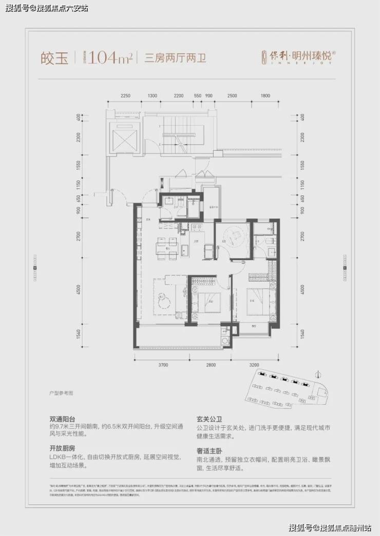 建面约104-148m²方定制空间,回应改善需求,户户设计玄关,大开间、短进深,以宽景大阳台揽怀自然逸趣。