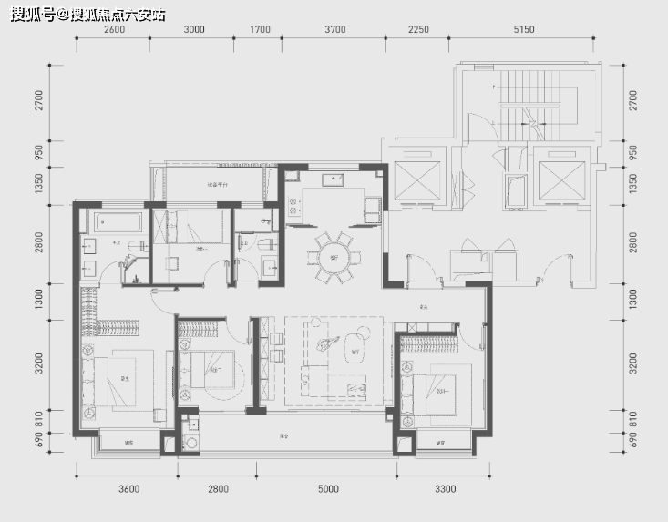 再来看148㎡的户型,体验感几乎与180㎡的大平层打平,断层领先。
