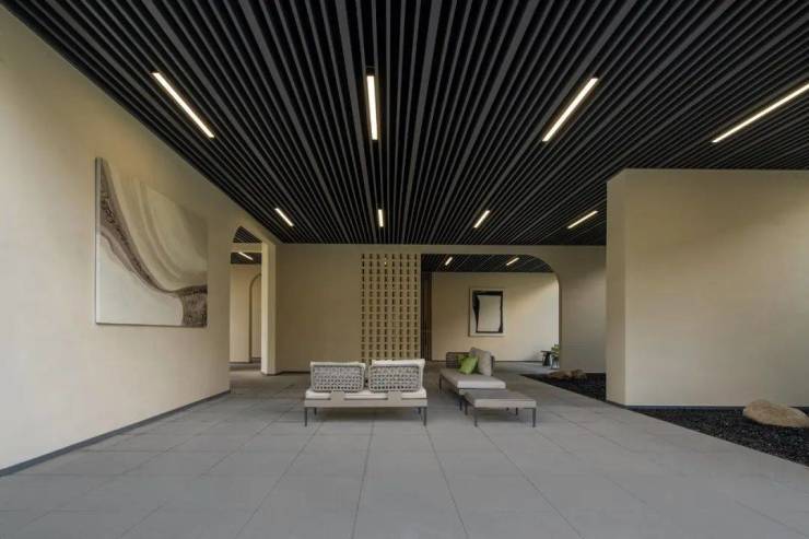 建筑外立面毫不逊色,以高级灰为主色调,搭配大面积的通透玻璃和极简的线条设计,让立面显得更加干净、利落,部分楼幢主楼外墙更是以铝板为主,都是看得见的高成本。