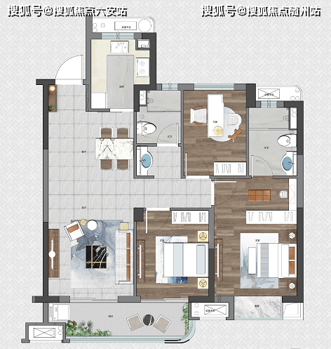 稍微提一点预算,也可以拿下约99㎡户型,三房两卫的布局,住起来更加从容。