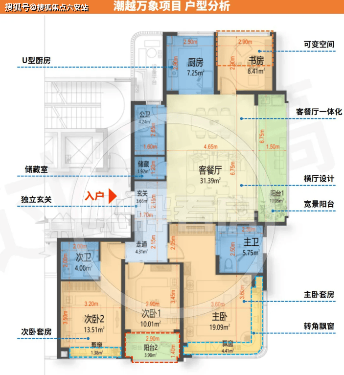 139㎡双套房三卫:14米南向四开间,270°环幕飘窗,南北通透;