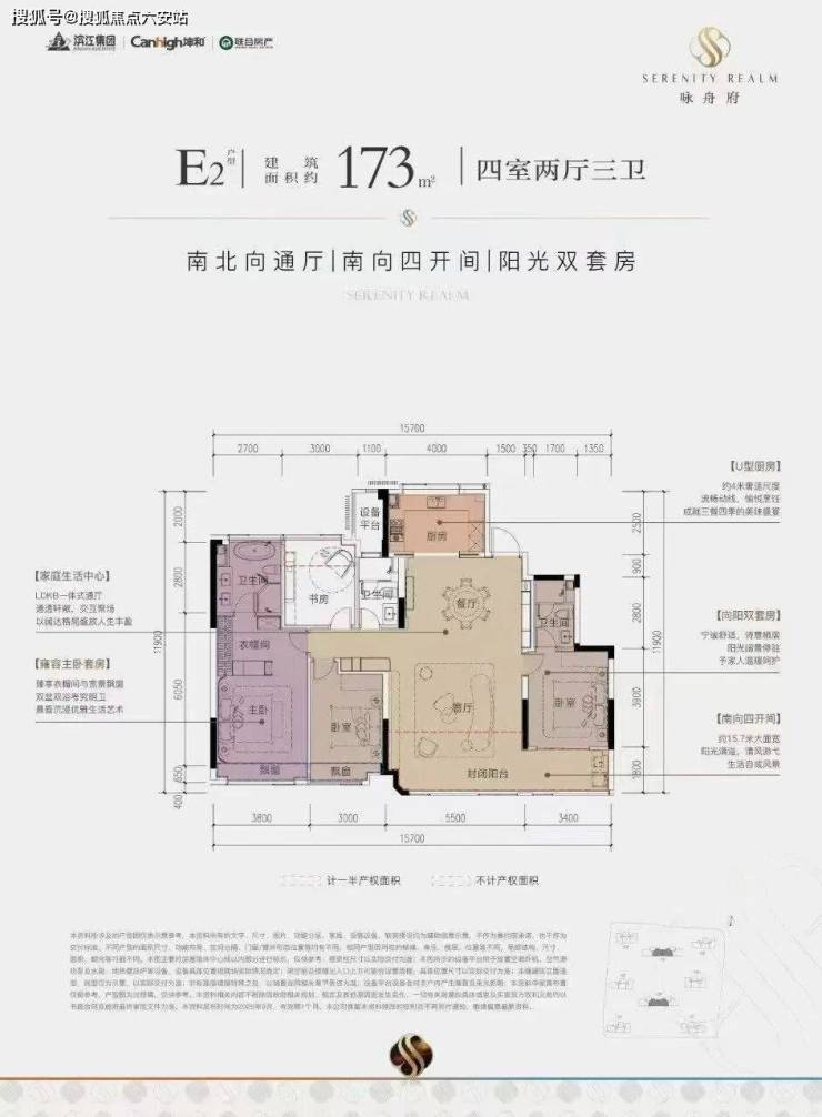 四开间朝南,南向面宽超16米。双套房设计,满足二胎家庭、三代同堂等不同居住需求。餐客厅空间阔绰,可放置圆桌,符合中国人团圆的爱家情怀。