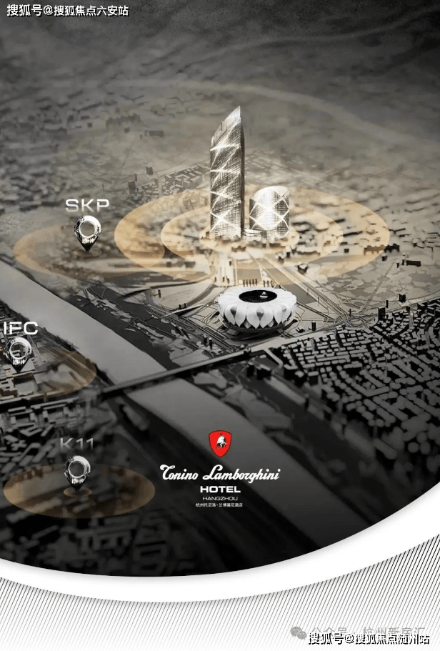 是杭州之门后,奥体落成的海拔第二高双塔(约250米),外号“小杭州之门”。瑰郦中心L-VILLA位于T2塔楼,12层的裙楼就是托尼洛·兰博基尼酒店。