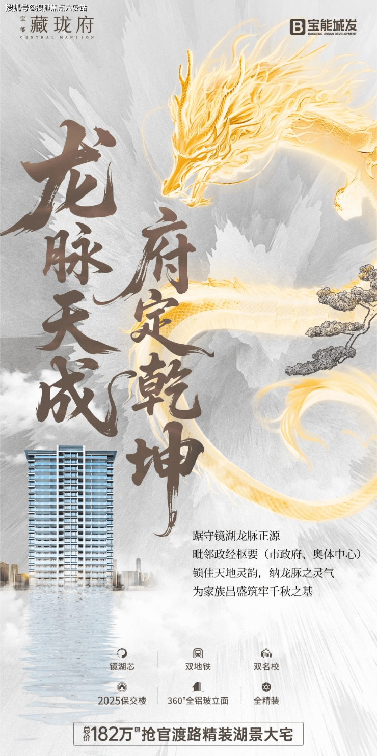 绍兴镜湖宝能藏珑府|镜湖芯双地铁现房!建面96-188㎡精装湖景大宅,总价182万起抢官渡C位