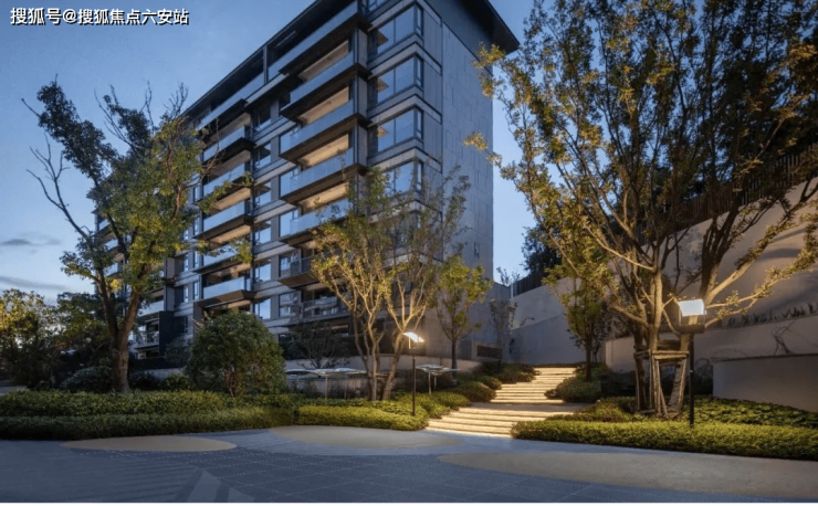 ◎ 建筑以天然山水石、玻璃及铝材作为低层基座,灰色调子与周边环境互相融合。
