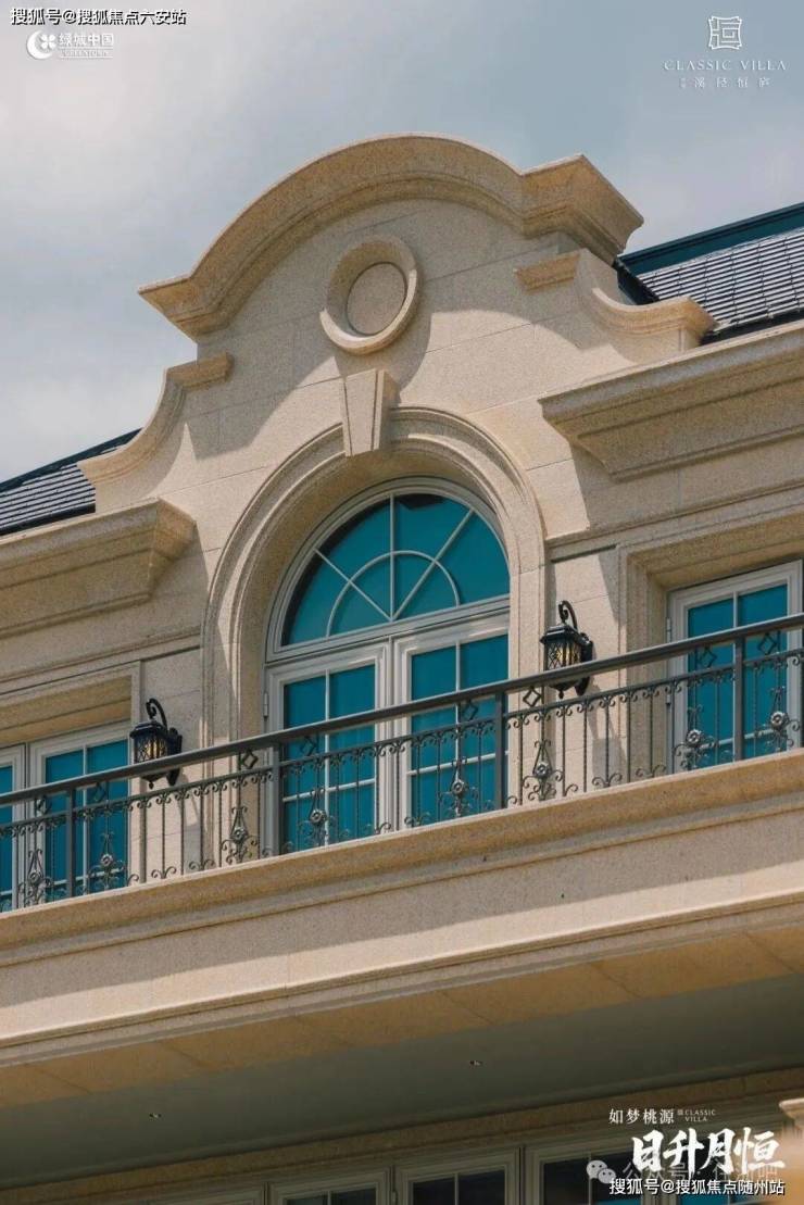而做了超长面宽和大面积落地窗之后,你不会觉得这样的法式合院是违和的,它依旧是经典的法式建筑。因为绿城仍然严格遵循了法式建筑的规制,大到外立面用了全干挂黄金沙石材,小到栏杆、窗格、艺术装饰、宝瓶柱等等,都很经典。