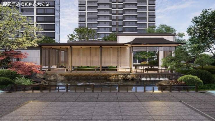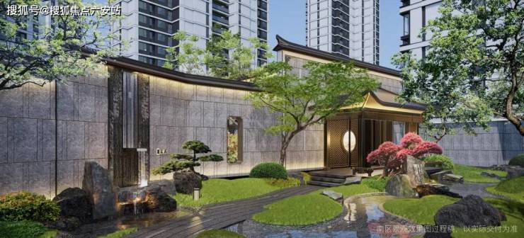 项目以门庭为礼序之始,南、北区各配置磅礴威严国风大门,为每一次回归赋予尊贵仪式感;建筑立面,三面大面积铝板+玻璃、涂料等用材,雕梁画栋国风意境,简约不失华贵;多进式归家园林,汲江南山水、历史源流、人文风物之精髓,绘就东方山水画卷。