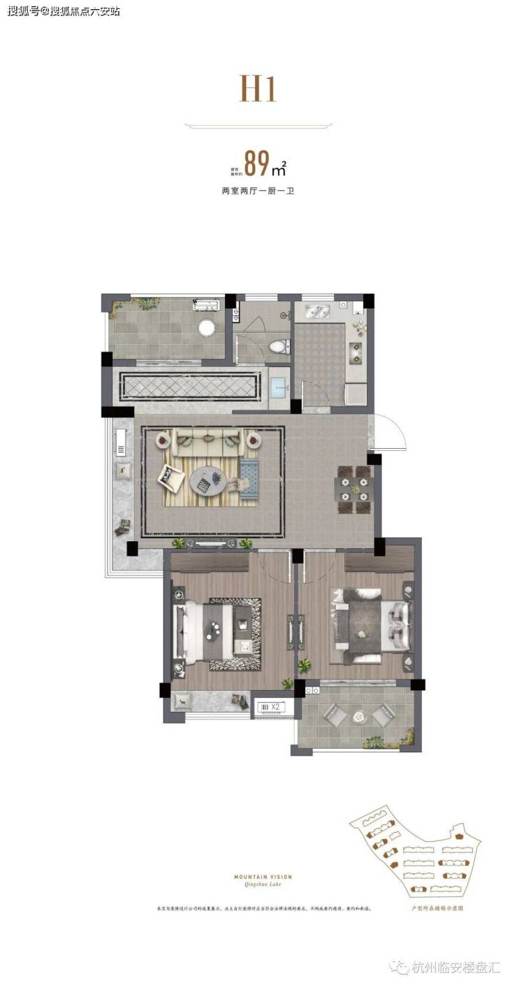 79㎡三房:南向三开间,6.8米双联阳台,主卧套房+独立玄关,得房率83%