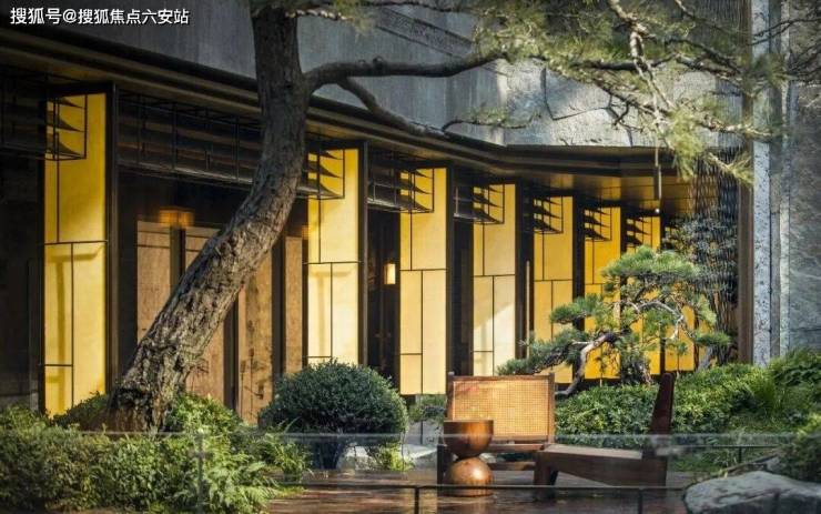 流瀑从金舟缓缓而下,流入了负一层的下沉式庭院,庭院里种满了又高又大的松树,四周一圈都是大块大块的老石皮,有野趣,也做出了贵重感。