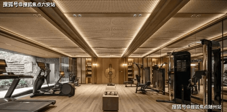 不止,每层园林都连着会所配套,既有通高12米的会客厅,也有嵌在「松林崖壁」之间的私宴厅,还有能和庭院融为一体的健身房。