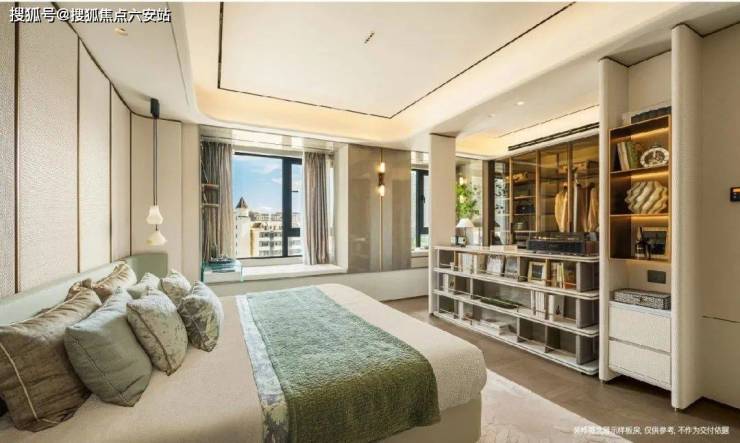 次卧的L型全景阳台可以说是点睛之笔,270°窗景设计,光与视野充分延展,西首更享西侧中庭景观视野,诗意与生活兼容,无论是作为老人房还是儿童房都极具品质感。