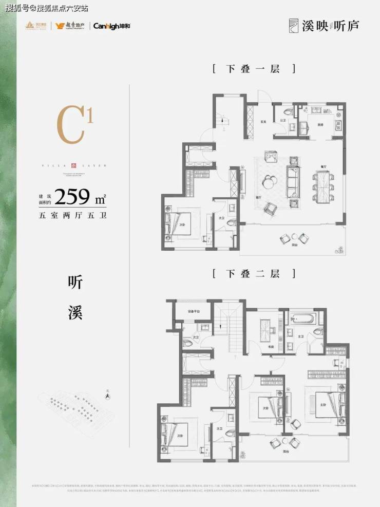 溪映听庐采用了错位排布,将上叠客厅和老人套放到四楼,连通露台;卧室移到三楼,避免上下叠间作息不同,互相影响,也方便上叠业主更好欣赏茶山美景。一层除了派对式公区外,还有一个套房可以给到家中长辈居住