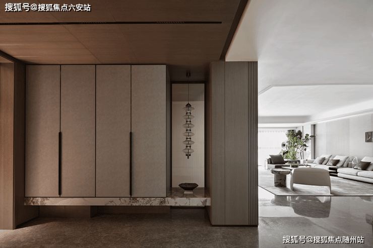 与宁静相视,得以感受从身体到心灵的放松状态,在此寻得一场安身和疗愈。深浅皮革包裹出墙面适宜的情感温度,金属嵌条穿越其间,在木质地面的催化下,似乎有着包容万千的气韵。