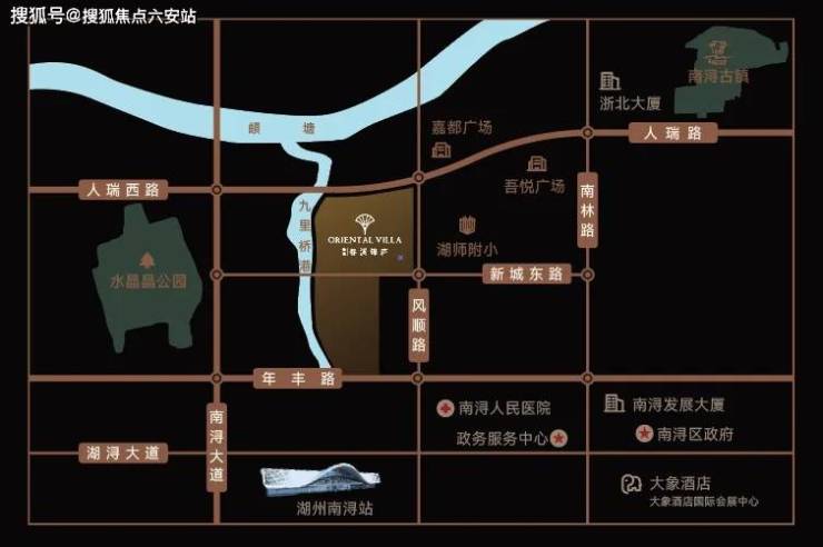 城市干道:直线距离约4km南浔高铁站;人瑞西路、年丰西路、风顺路、南浔大道环绕;沿南浔大道,可快速直达沪渝高速、南浔互通、申苏浙皖高速入口