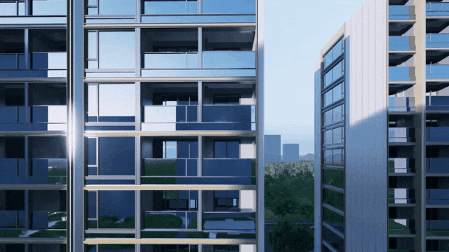 所以它有更迷人的“夜行者美学”(夜晚归家的氛围灯更立体)、更丰富的风雨连廊系统(连廊形态有4种)、更生机勃勃的“活力花园街区”,以及M55系标志性的全龄化社区、精装入户门厅、精装地库……