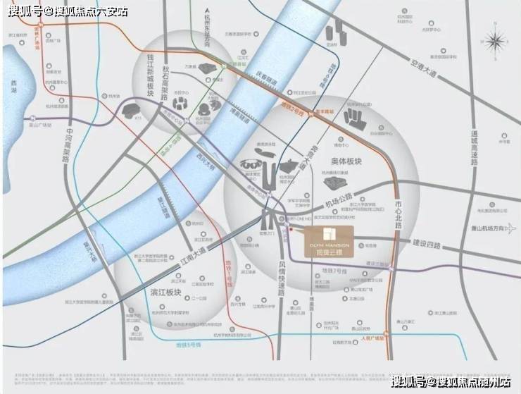 项目位于奥体、滨江、钱江新城核心三角区域,直线距离亚运主会场“莲花碗”仅1.5公里,与奥体中心一站地铁直达(7号线兴议站TOD上盖)。周边汇聚大小莲花碗、SKP(在建)、T-ONEMO(在建)、奥体印象城等地标,形成杭州城市形象展示窗口。
