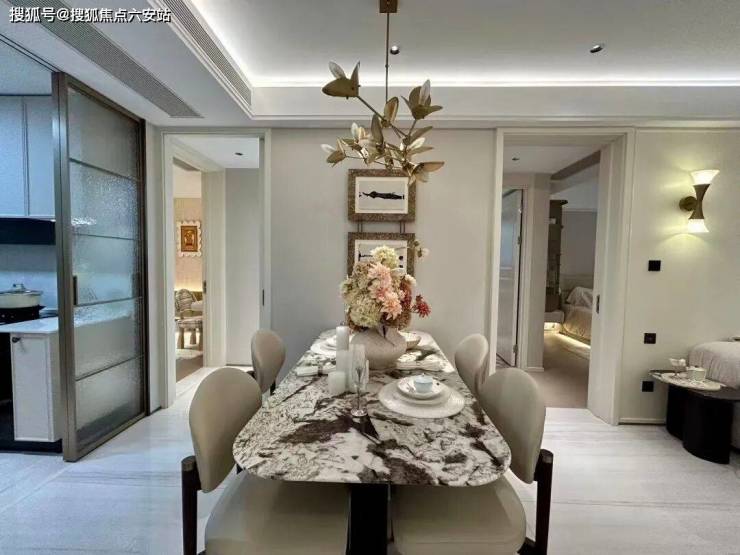 项目邀请知名团队设计,入口大门借鉴了伦敦梅费尔瑰丽酒店的风格,打造了约60米长的瑰丽门庭,这尺度,光看着就感觉气派非凡,归家的仪式感拉满。