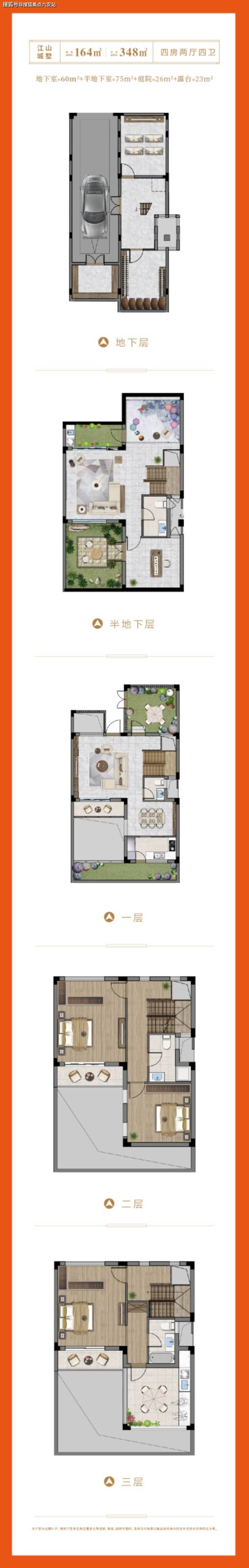 · 山水院墅:建面约153-160㎡,三进式母合院,南北双花园;