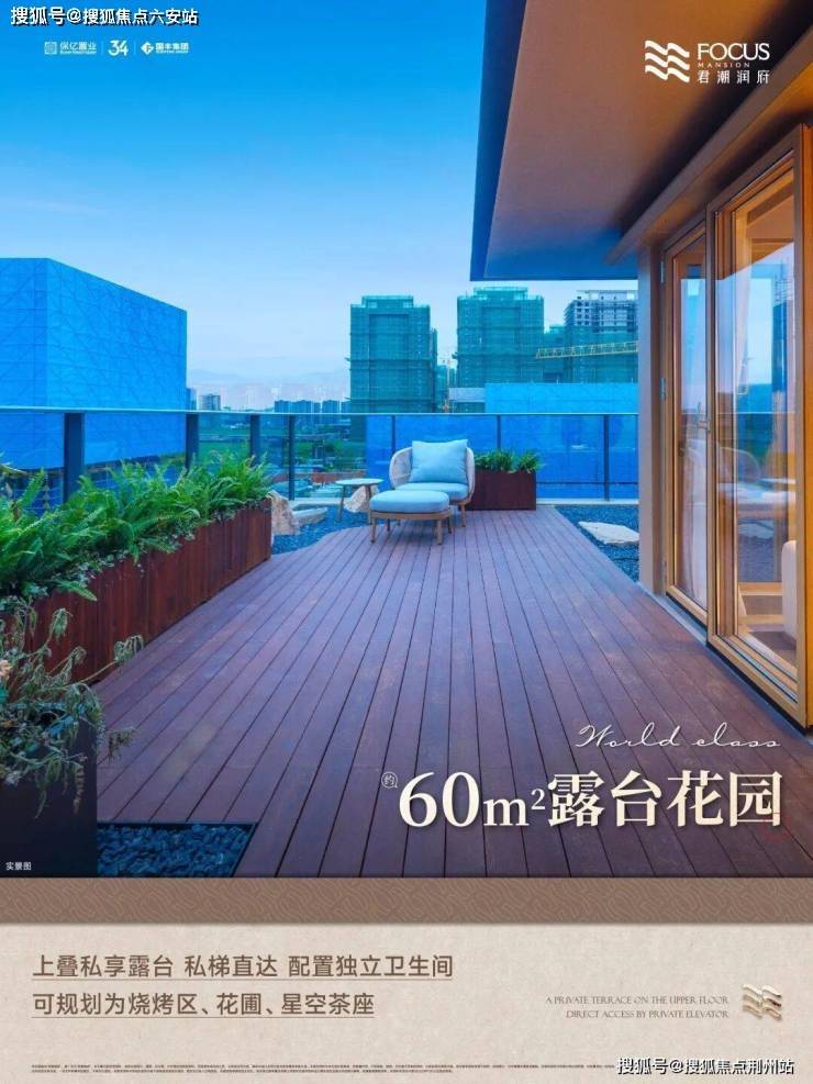 上叠约60㎡露台花园:私梯直达、配置卫生间(预留空间),离天空最近的家庭社交场