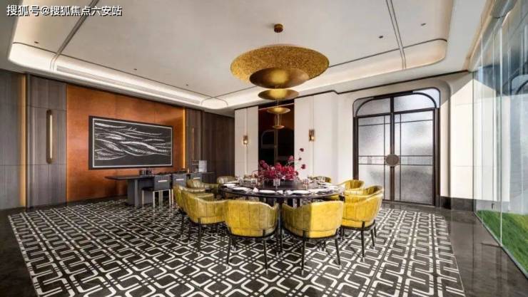 过程版效果图仅供参考 不代表交付标准为了实现尊贵雅致的归家仪式感,打造“五境归家”动线,约37米延展面的府院式大门、约4米挑檐星空顶及尊贵酒店式落客和parda绿奢石,勾勒出每一步皆静奢的归家质感。而在入户电梯厅,经典纹样的瓷砖拼花,搭配雪山银狐岩板和精美壁灯,让业主的每次回家都被温馨氛围包裹。