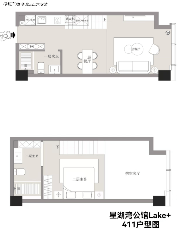 灵动分层:建面约60㎡户型实得120-150㎡,挑空区域可改造为星空书房或茶室