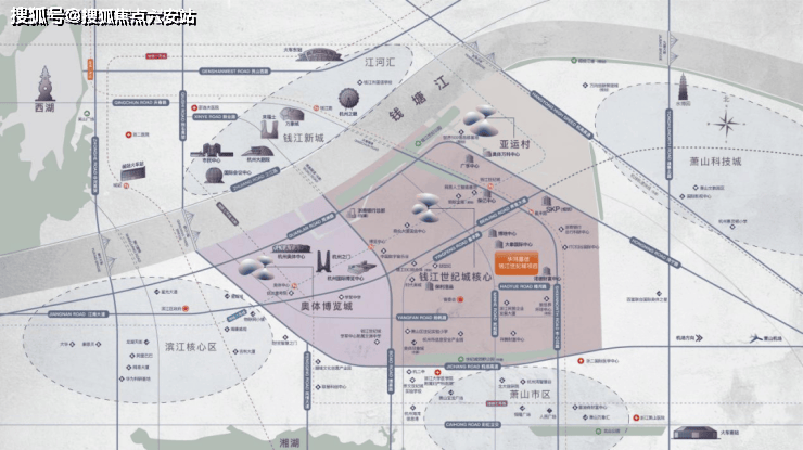 交通配套方面,项目周边形成三轨环伺的立体交通网络:地铁2号线、6号线、7号线在此交汇,最近地铁站仅300米距离。机场快线直达,两横三纵路网贯通全城,双隧道快速连接钱江新城,实现了全城高效通达的交通体系。