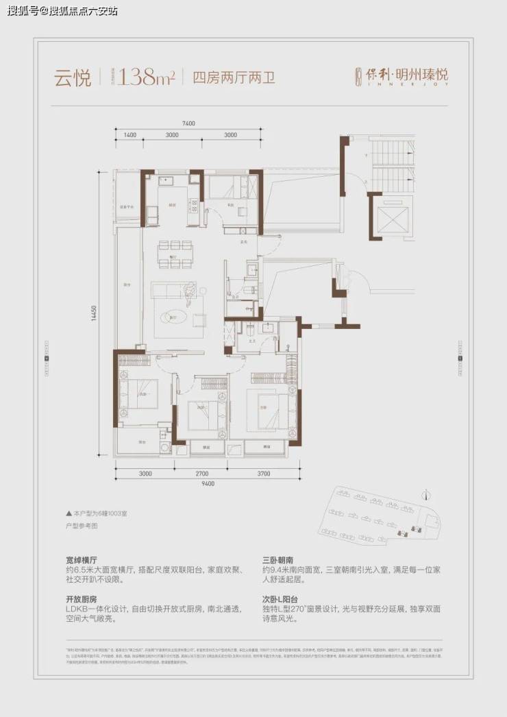 产品类型:高层住宅,主力户型面积104-148平方米,涵盖三居室和四居室