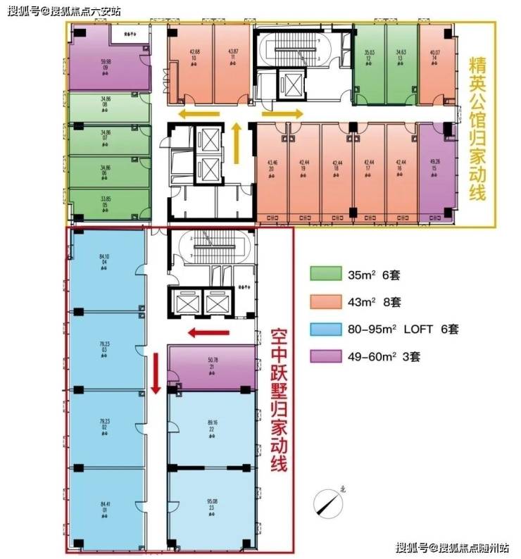 约4.79米层高:建面约34-59㎡双钥匙户型,上下独立分区,可自住+办公/双租,实得面积翻倍;