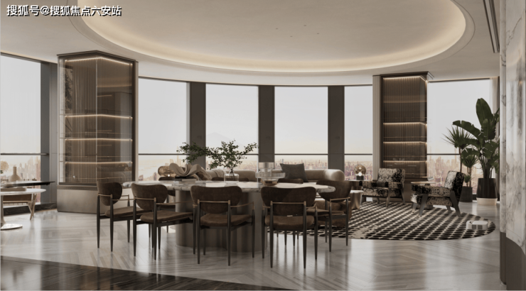 要放大窗内的视界,首先需要这样能拉开近百平尺度的弧形客厅,高贵的淡色调里,你能看到精细编织的皮质、金属和奢石纹路,他们像是游动的针线织纺出水墨留白的空间性格。