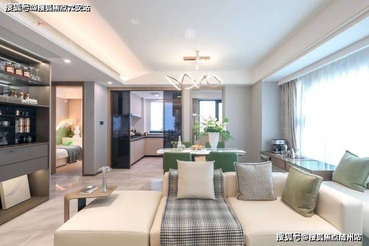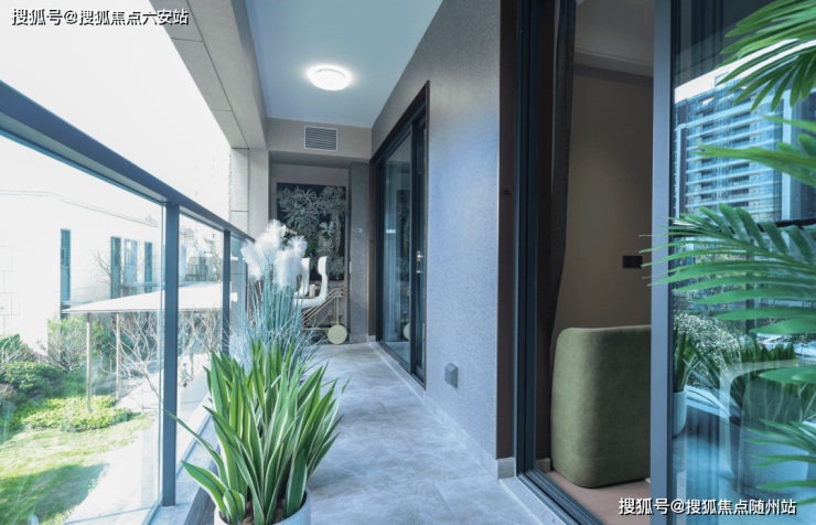 南向双联阳台仿若一方悬浮的观景台,驻足远眺,可尽收楼下的园林美景,在这里沐浴风景,莳花弄草、围炉煮茶、瑜伽健身。同时,约6.6米的大尺度开间也能将阳光引入室内,明亮而通透的空间里,浸润着流动的光影,户外成为室内的延伸。