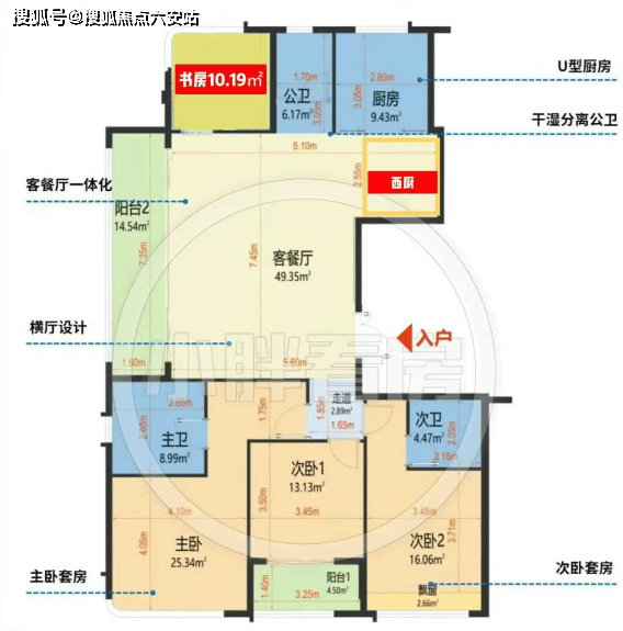 • 客餐厅一体化达49.35㎡,中西厨设计,聚会自由