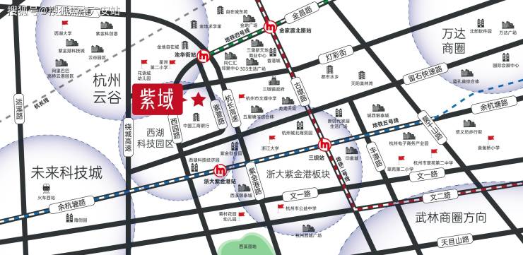 Ø 紫域北侧衔接杭州云谷,南侧毗邻浙大紫金港版块,产业优势明显;