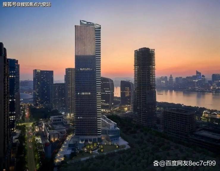 建筑立面:240米摩天双塔采用全玻璃幕墙+梯形体块设计,如钱塘潮水般流动,夜间LED光影矩阵点亮城市天际线,成为钱江新城新地标。