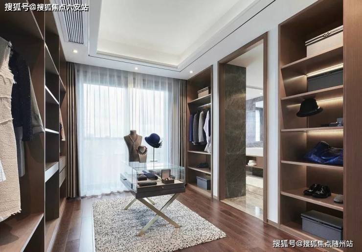 走入空间,可见水纹的柔美点染于软包、画饰、地毯等软装上,渲染出怡人舒适的空间氛围。三扇大面积玻璃门窗,将四时风光纳入框景中,邀人坐看自然的生机、时间的足痕。