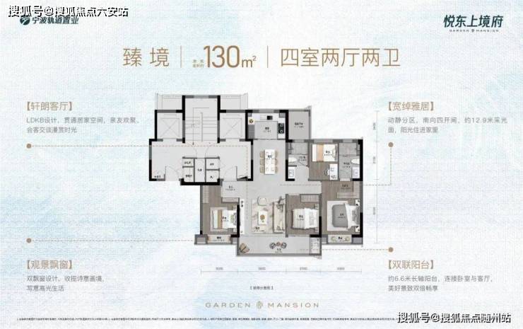 悦东上境府建面约130㎡进阶四房