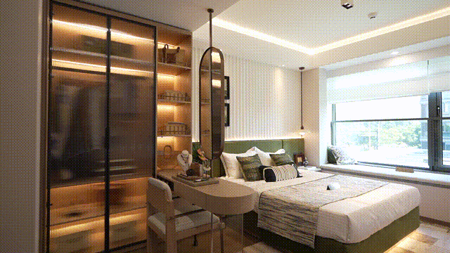 而圣奥·潮映望月府位于金沙湖北直线距离约2公里处,通过海达南路将形成与金沙湖区的生活配套共享,融入这一国际湖区生活圈。而同时,直线距离约2公里也让潮映望月府得以脱离湖区的喧闹与嘈杂,用相对更静谧的方式,安放生活的惬意与自在。
