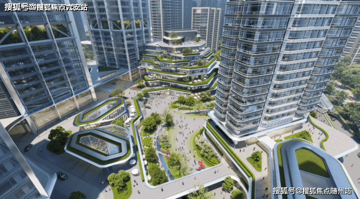 商务配套:对标伦敦市政厅广场的中心广场,含14000方立体景观(7座空中花园、屋顶跑道),办公间隙可享自然与艺术;