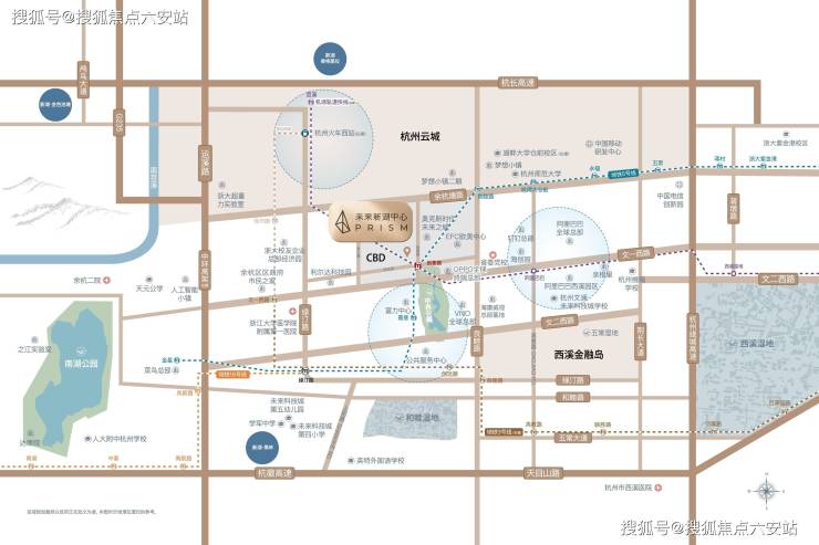 政务主场:2公里半径内省委党校、余杭区政府、未来科技城管委会等政务引擎林立;
