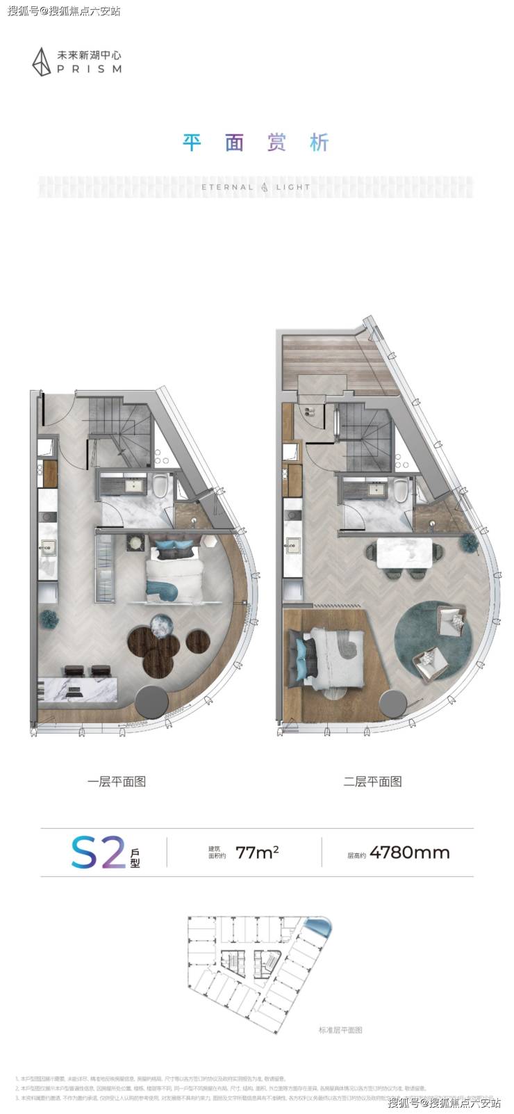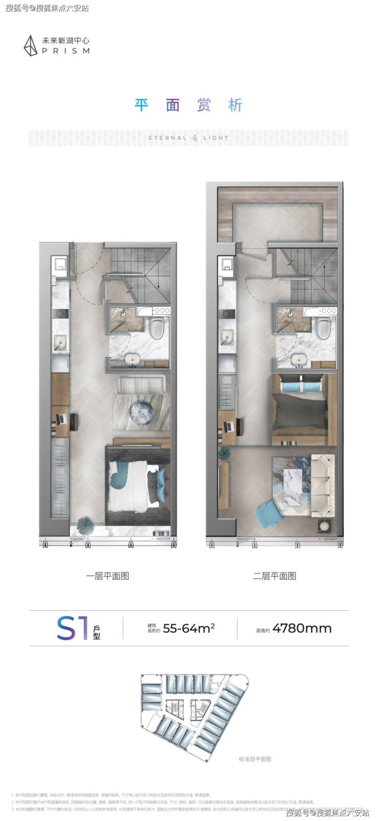 建筑面积约55-80㎡多功能空间。4.78米层高,上下两层,少有层高,少有小户型。