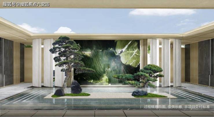 步入星级酒店式归家大堂,率先会为迎面那块高约4.8米、宽度超约12米巨幕开窗所吸引,对景即是『沐光悦澜』水景会客厅,不仅打破空间局限,延伸视觉的宽阔感,更框出一幅绿意掩映的自然美卷,为归家场景注入鲜活生机。