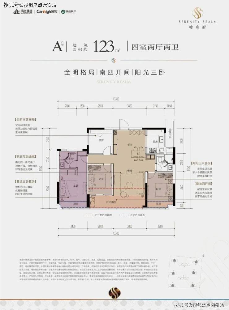 项目打造建面约123-173㎡的主力户型。该项目在户型打造上也有诸多突破,如建筑面积约139㎡户型采用约6.8米全景横厅,采光极佳;约21㎡主卧带步入式衣帽间,搭配270°转角飘窗,更奢华明亮;双洄游动线体系既保证隐私又创造多元互动场景。