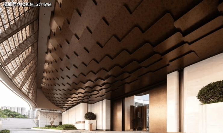 “弧光织境”是个圆形回廊,中间立着个水滴雕塑,据说设计团队最初的灵感,是希望营造“四水归堂,聚气纳财”的传统寓意。从高区往下看,水景的轮廓还真像一枚古钱币,水波滴答,涟漪淡淡。水能生财嘛,这个意境大家都懂。