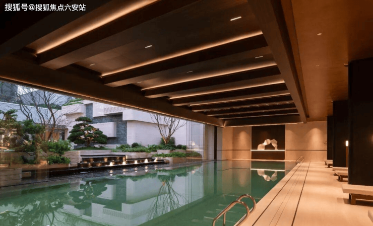 三进“枕流邀月”的下沉会所才是大招。恒温泳池旁边的玻璃能全部打开,直接通向下沉庭院。这就不是个单纯的健身房游泳池了,更像一个高级度假酒店的露天bar,模糊了室内外的界线,氛围感拉满。