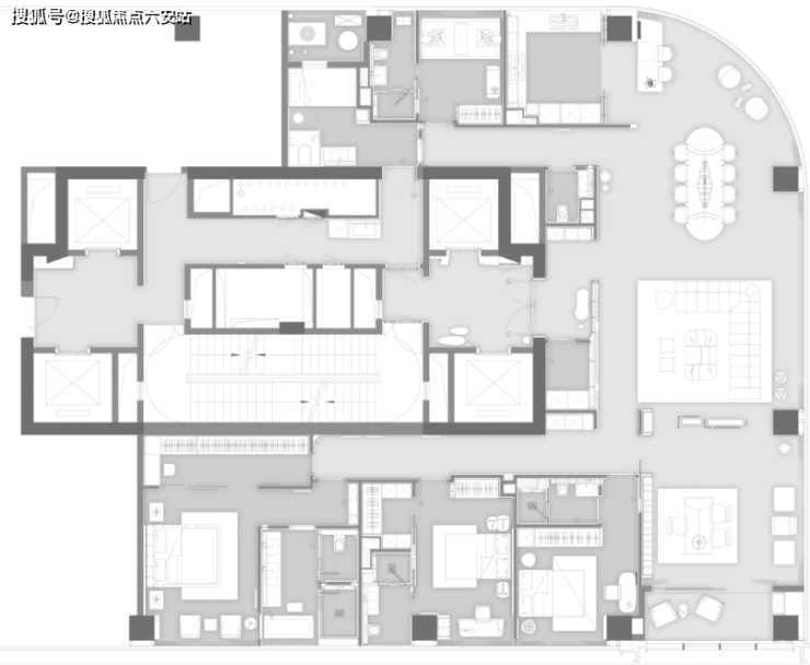 ▪️ 玉璞390㎡:5套房配置,郑忠设计"城市度假"空间,270°观景视面