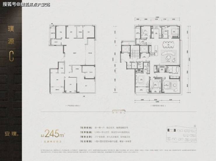 在户型设计上,安璞同样表现出众。约210㎡户型为五房三卫,其余户型均配备四卫,并实现三间套房布局,极大提升了居住的私密性与舒适度。