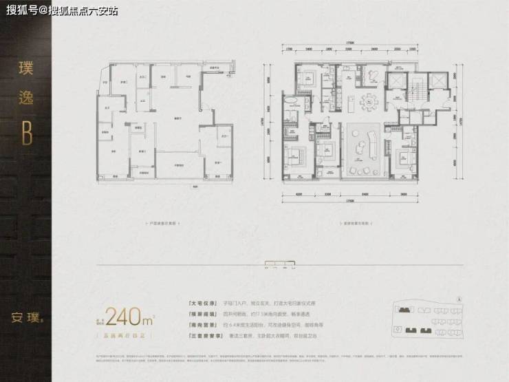 尤为值得一提的是主打户型——约240㎡南厅户型。该户型分布于12-16层的低密楼栋,享有接近一梯一户的尊贵体验,综合得房率约达90%以上。